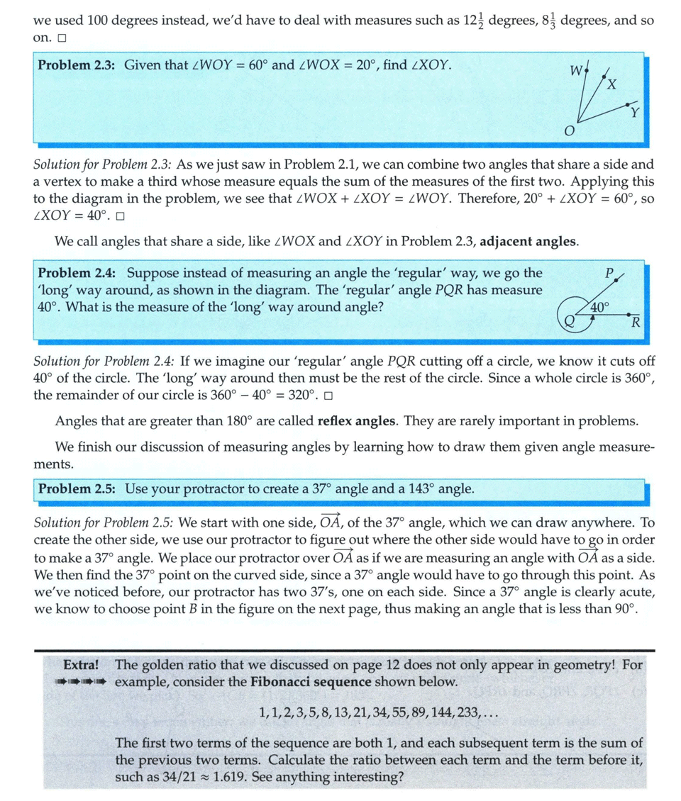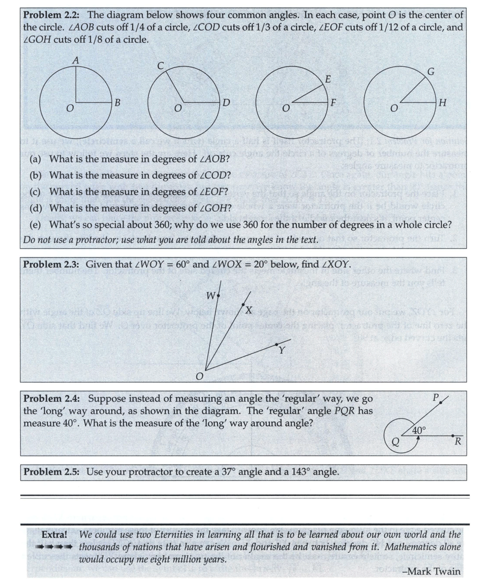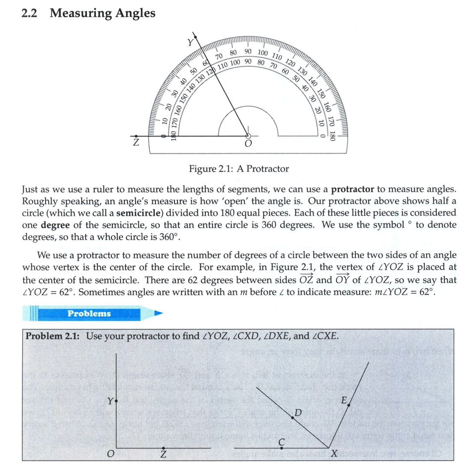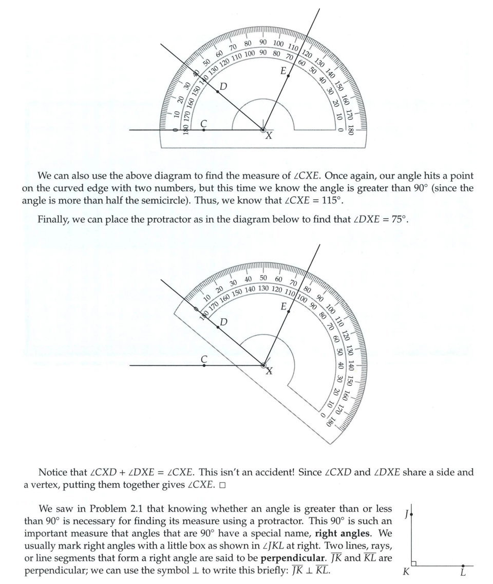 خم، پاره خط، برش و زاویه